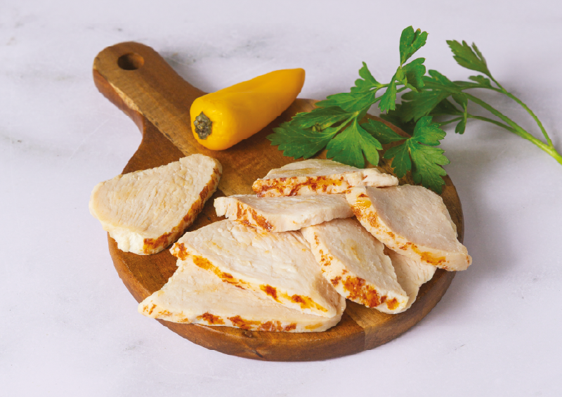 Roasted chicken fillet slices