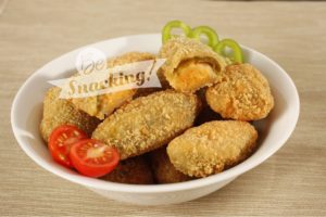 Mini donut de pollo empanado cornflakes con pepitas de queso fundido