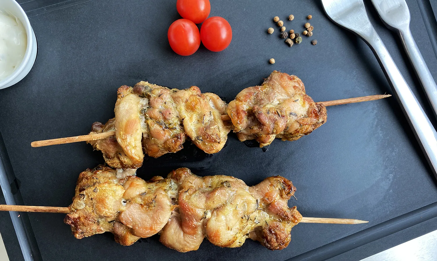 Brocheta de carne de catramuslo de pollo al limón y tomillo |